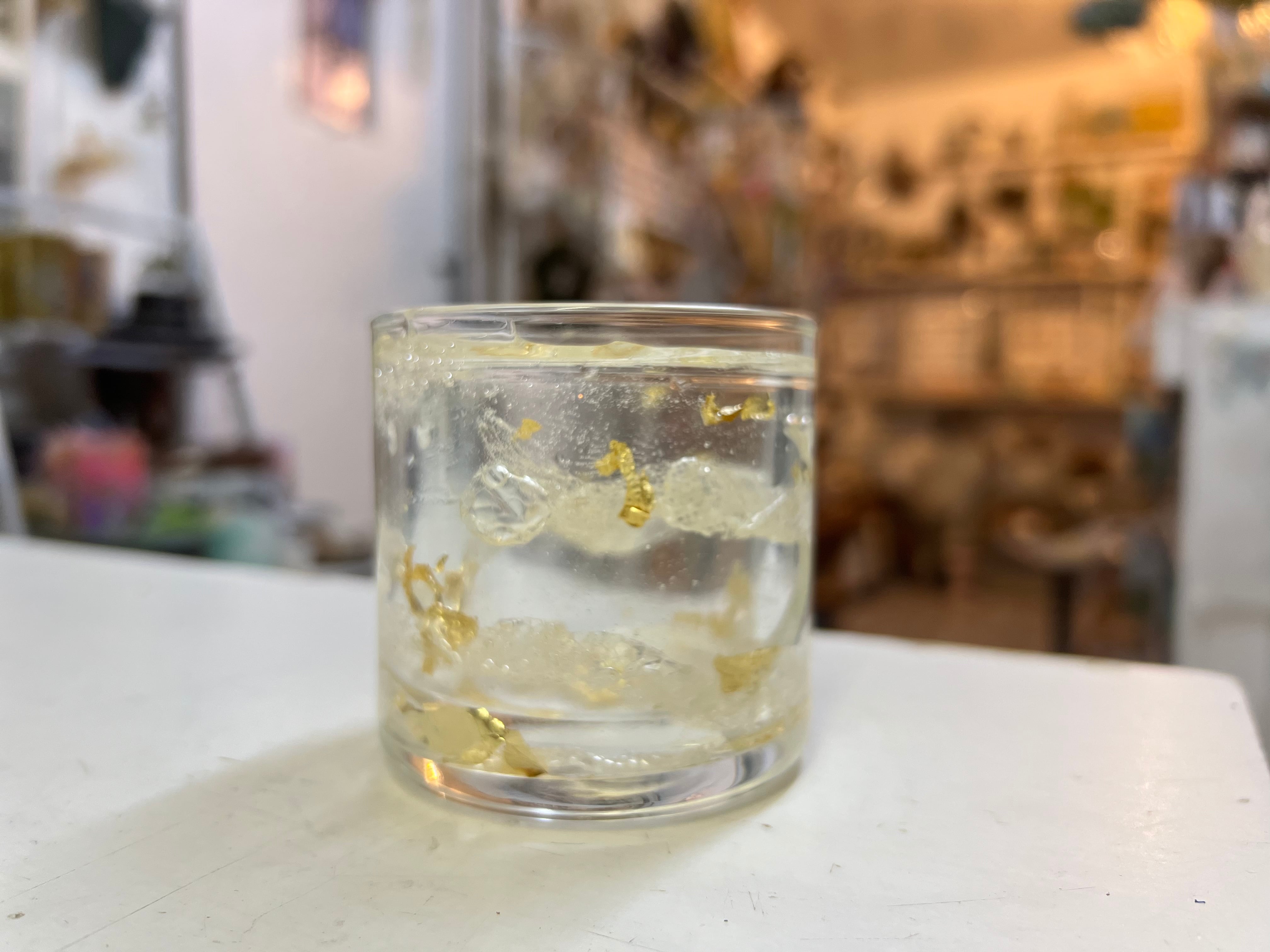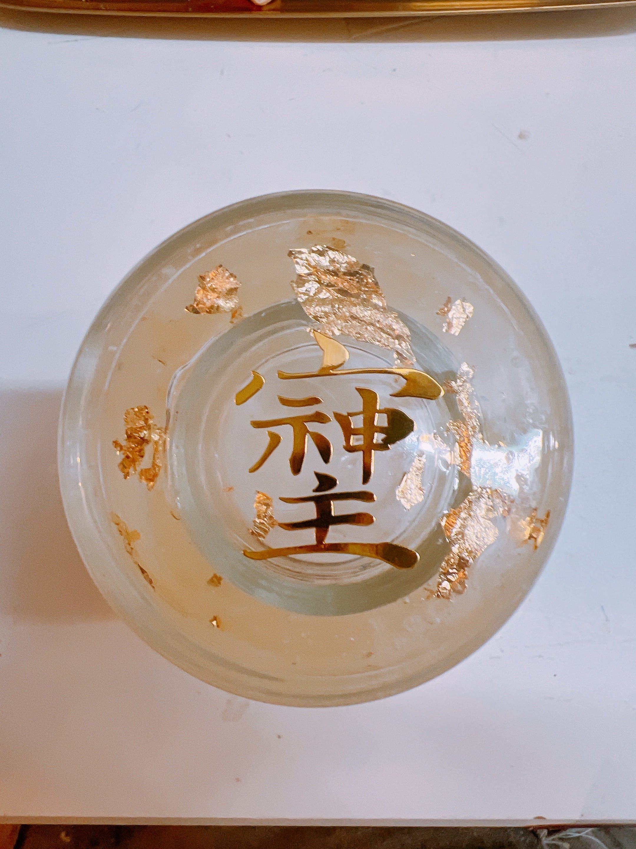 白蛇の脱皮した抜け殻と、金箔のランタンタイプのキャンドルです。